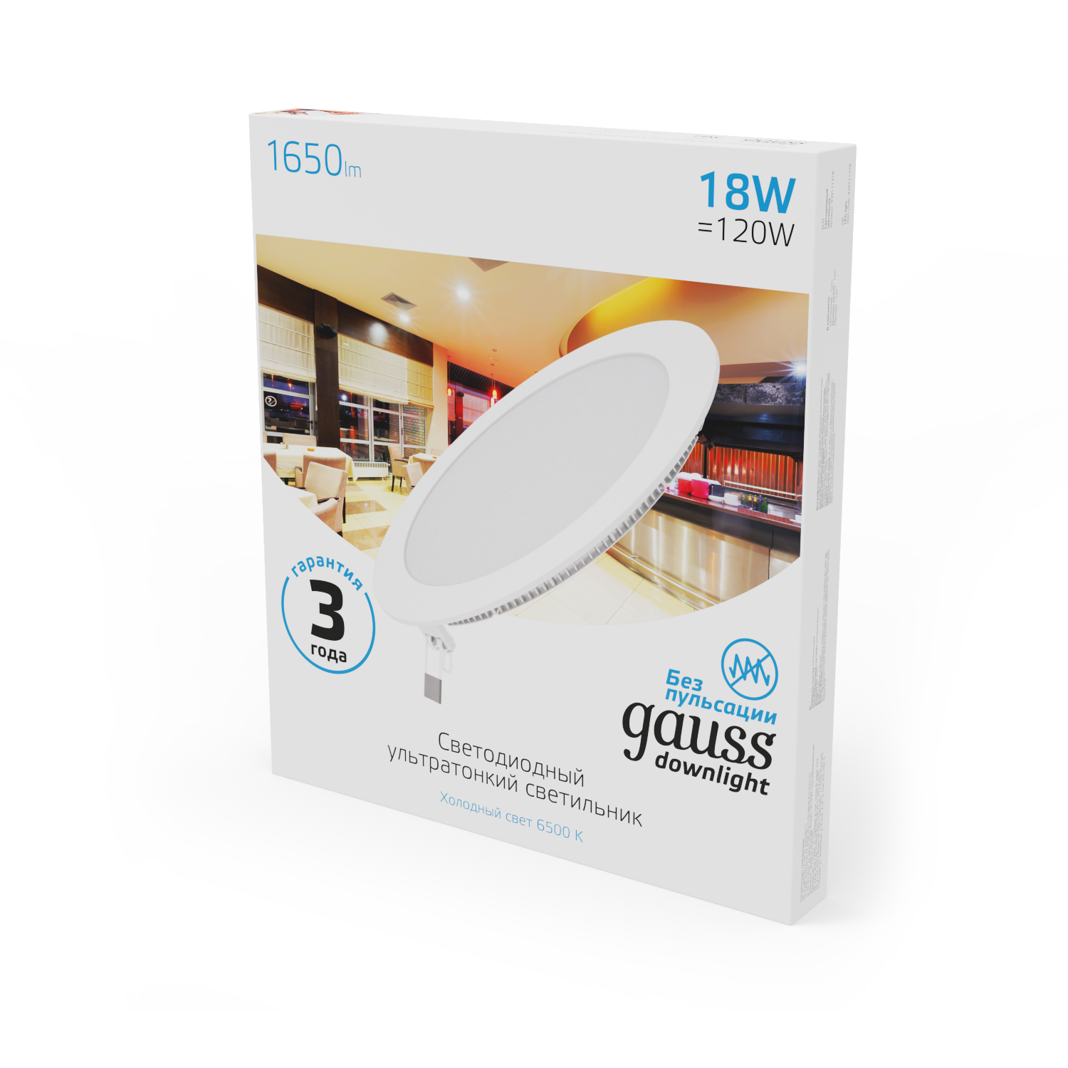 10 цен на Светильник встраиваемый ультратонкий 18W IP20 225х22 6500K круглый Gauss