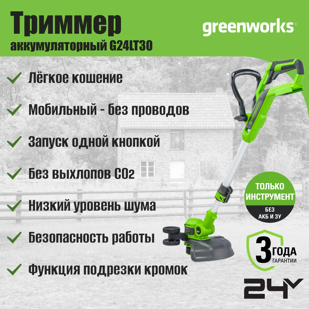 Триммер Greenworks G24LT30 24V 2110407 (30 см) аккумуляторный без аккумулятора и зарядного устройства
