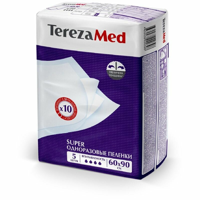 Пеленки одноразовые, TerezaMed, Super 60x90, 5 шт информация: