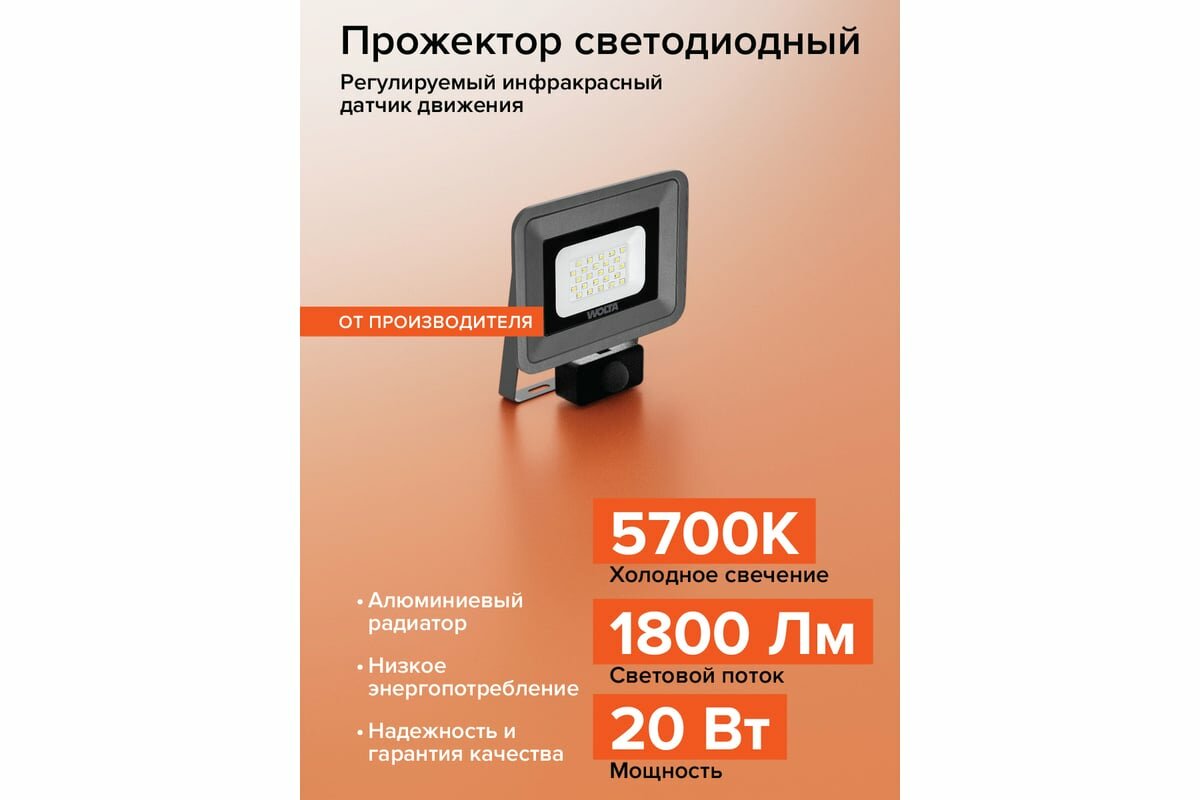 Светодиодный прожектор Wolta Olta 20Вт 5700К IP65 с датчиком движения 1800 лм Wfl-20w/06s . информация: