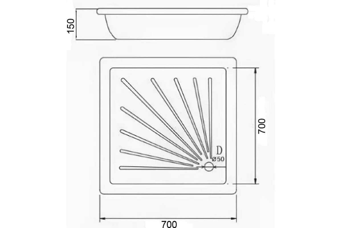 поддон Loranto Поддон Loranto стальной, квадратный 70х70х15 толщина стенок 0,9 мм, отверстие для слива 5 см, белый (LG700B)