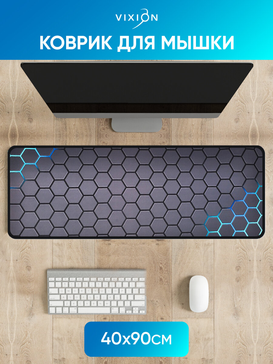 10 цен на Большой коврик для мышки игровой 400x900x3 мм Соты синий