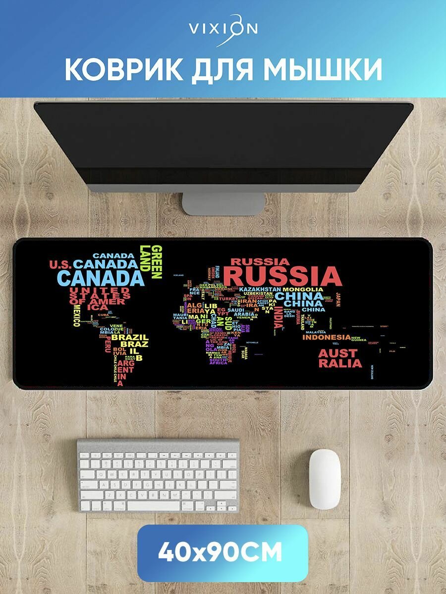 Коврик для мышки Vixion MP43 400x900x3 мм Карта мира надписи