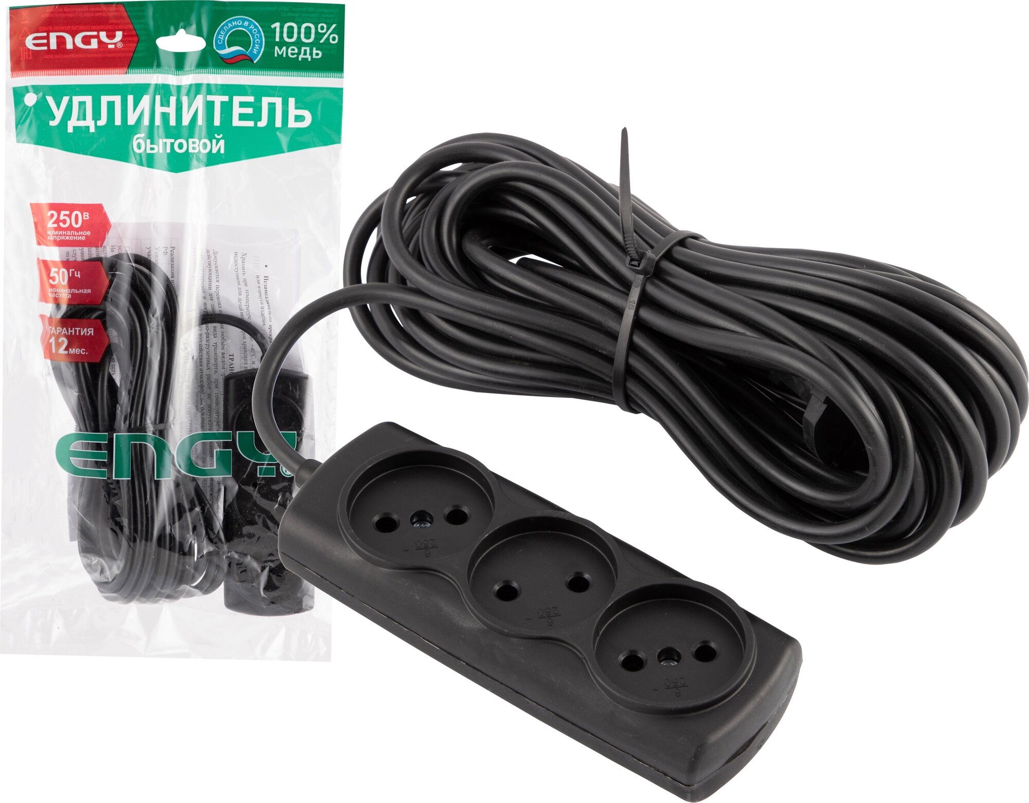 Удлинитель Engy Премиум 10 метров, 3 розетки, черный 186742