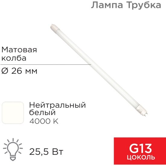 Светодиодная лампа Rexant матовая Трубка Т8 25,5Вт 2168Лм G13 AC 170-265В 1500мм 4000K нейтральный свет (604-4058) информация: