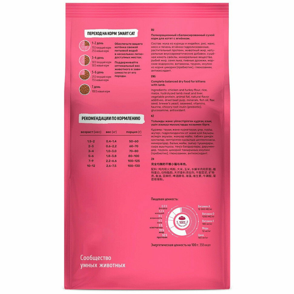 Smart Cat сухой корм Для котят с ягненком 5 кг информация: