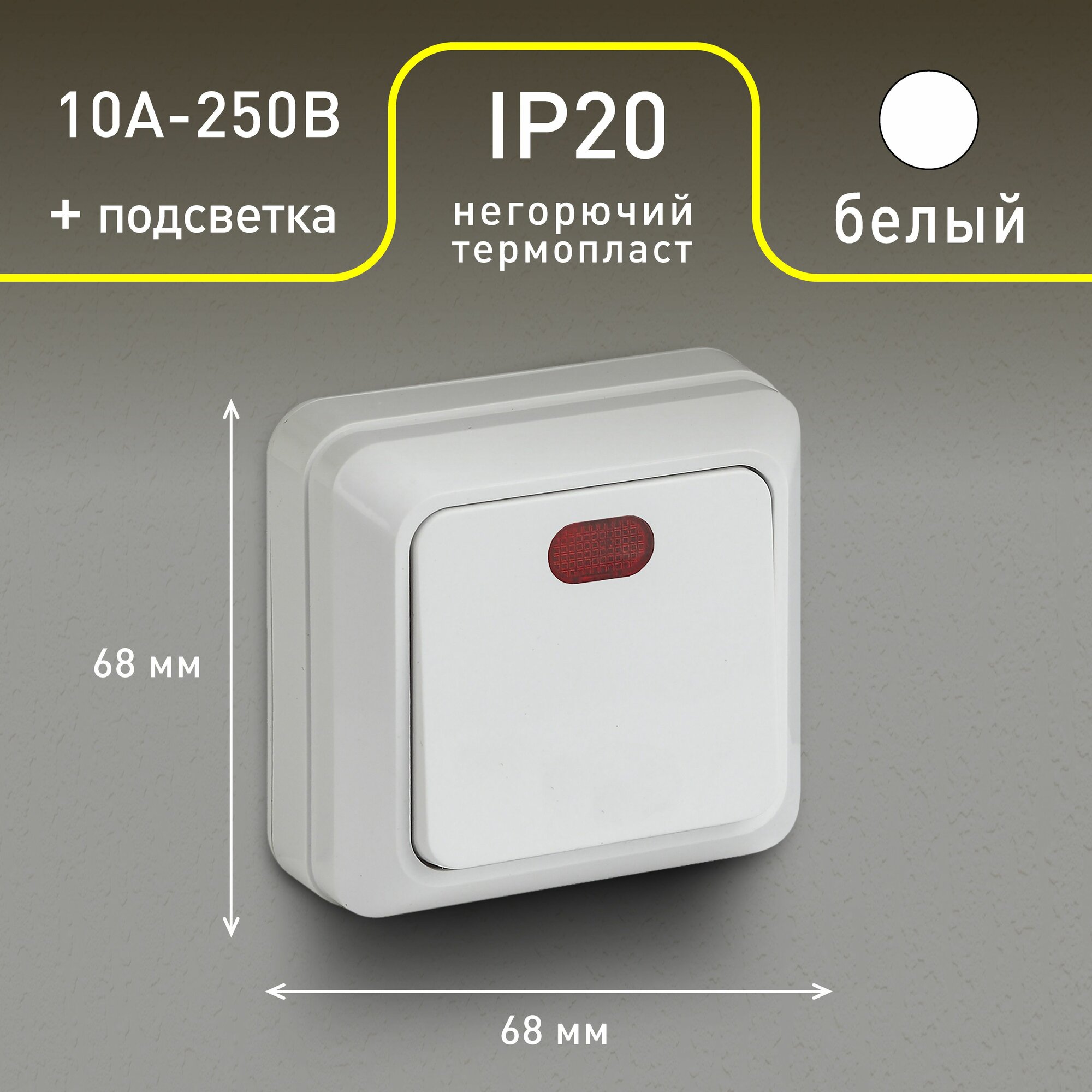 Выключатель Intro Quadro 2-102-01 одноклавишный с подсветкой 10А-250В IP20 ОУ белый информация: