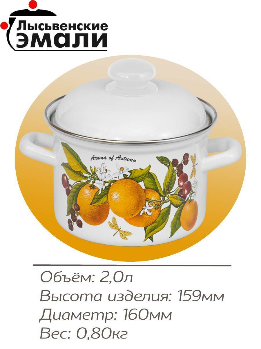 Кастрюля эмалированная 1,5 л с ободком белая с рисунком Фруктовая фантазия
