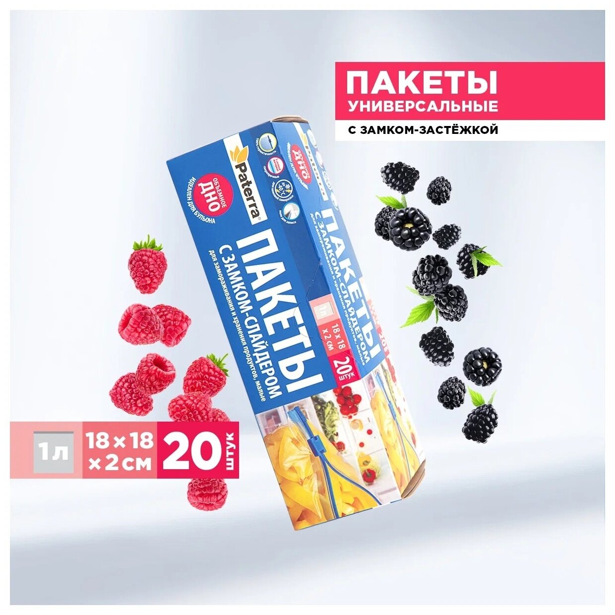 10 цен на Пакеты со слайдером для замораживания и хранения, 1л, PATERRA, 18*18*2см, 40 мкм,