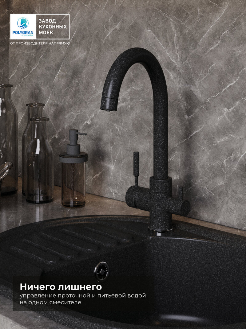 Смеситель для кухни Polygran Элара Дуо под фильтр, №16 черный (627666) 13 705 ₽