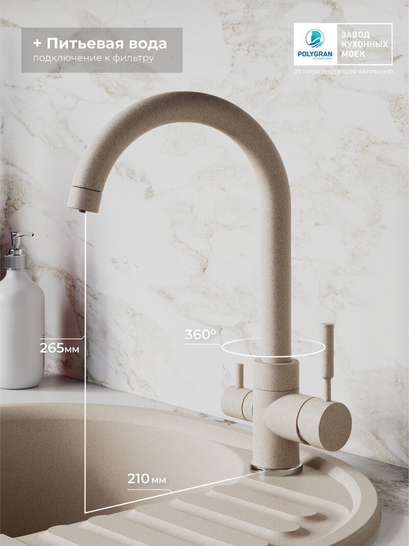 Смеситель для кухни Polygran Элара Дуо №302 627697 Песочный