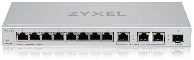 Коммутатор Коммутатор Zyxel XGS1010-12, 8xGE, 2x1/2,5GE, 2xSFP+, настольный, бесшумный (XGS1010-12-ZZ0102F)