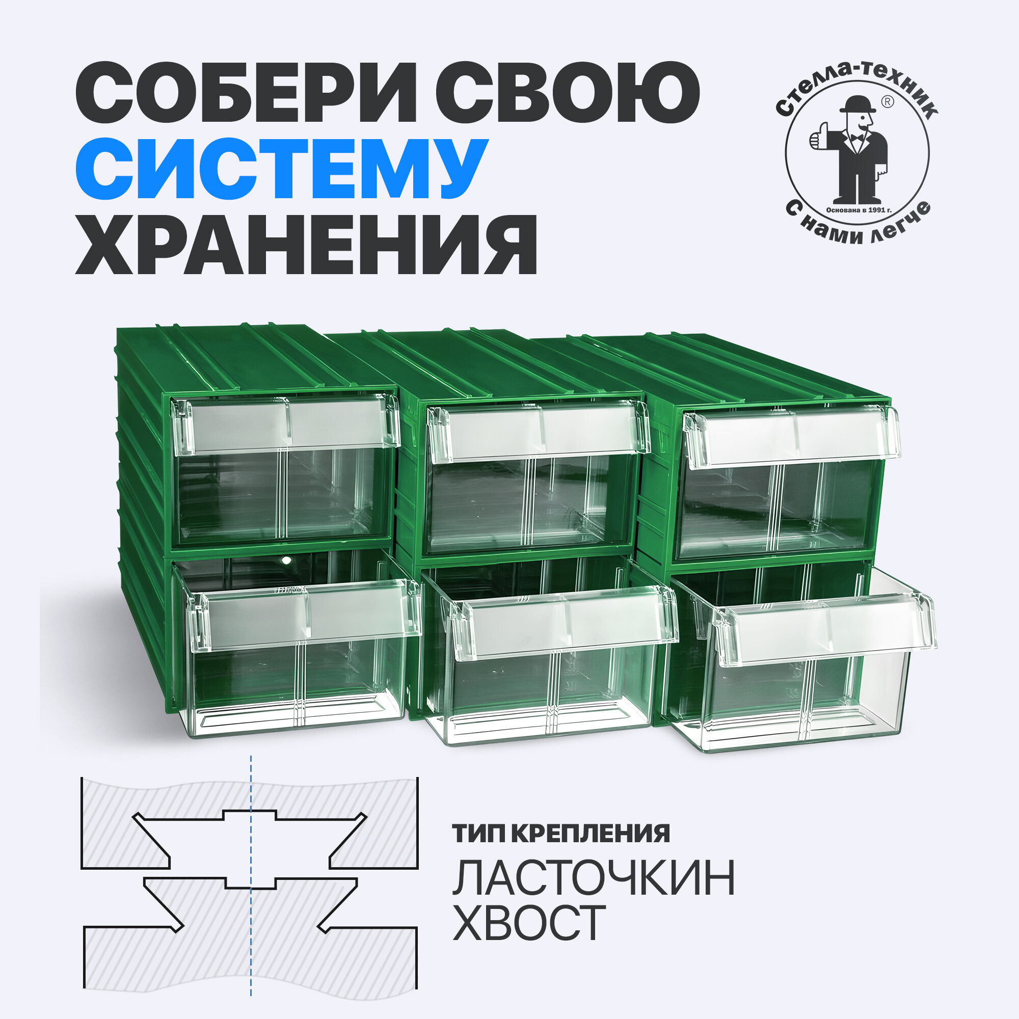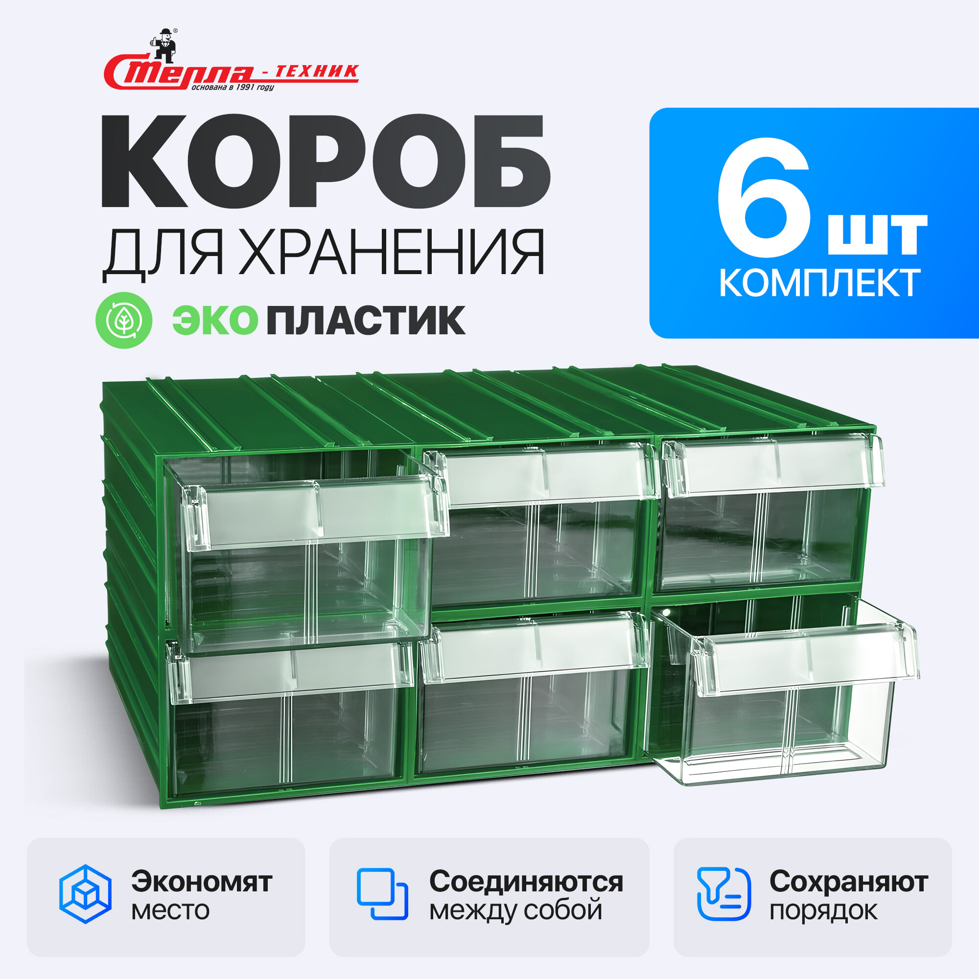 | Подробная комплектация | пластиковый ящик Стелла-техник V-1 - 6 шт.; металлическая планка-органайзер для крепления к стене - 1 шт. |