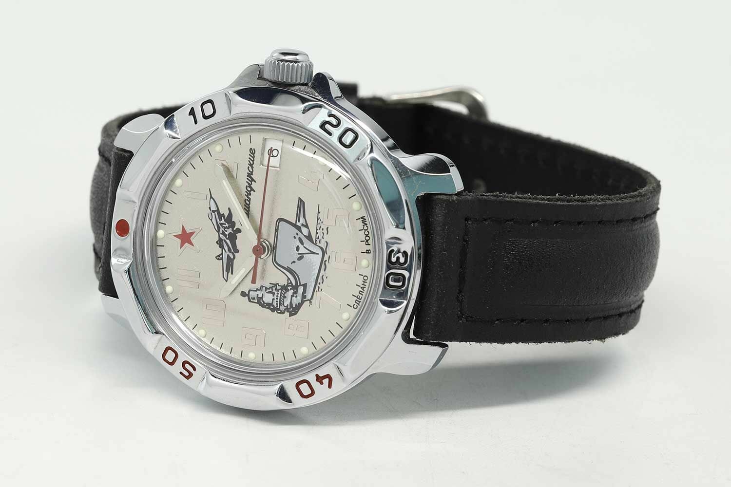 Мужские наручные часы Восток Командирские 53925Б-classic, натуральная кожа, черный