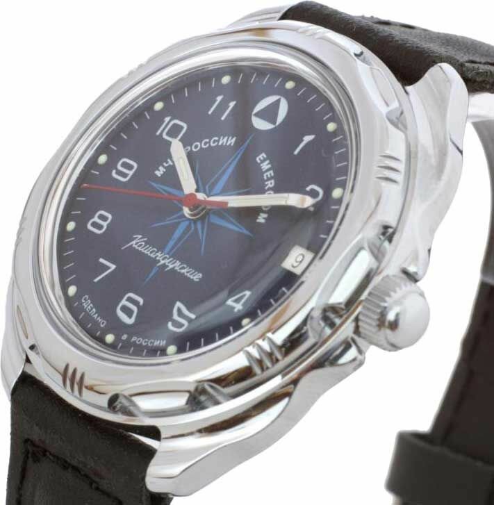 Мужские наручные часы Восток Командирские 53925Б-classic, натуральная кожа, черный