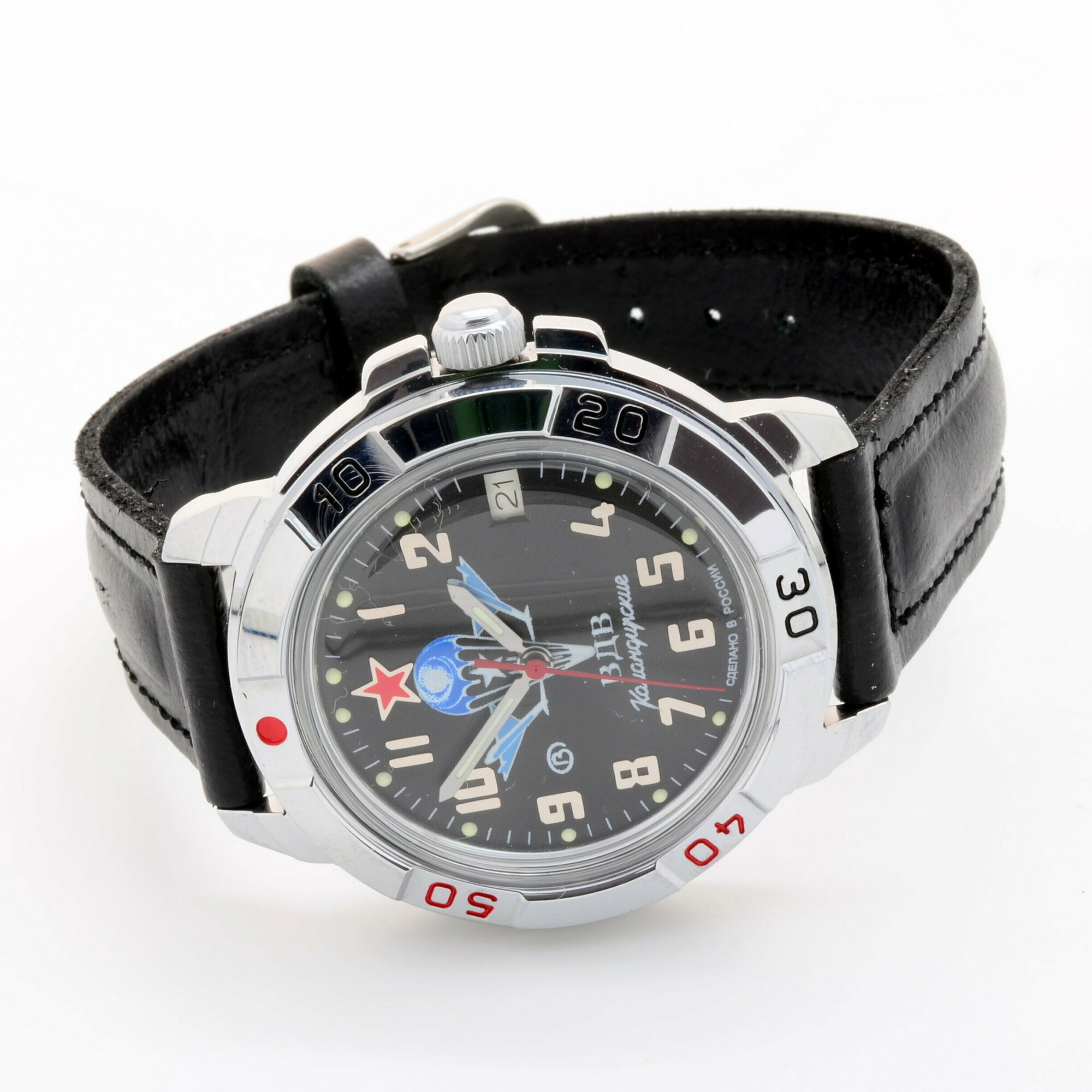 Мужские наручные часы Восток Командирские 53925Б-classic, натуральная кожа, черный