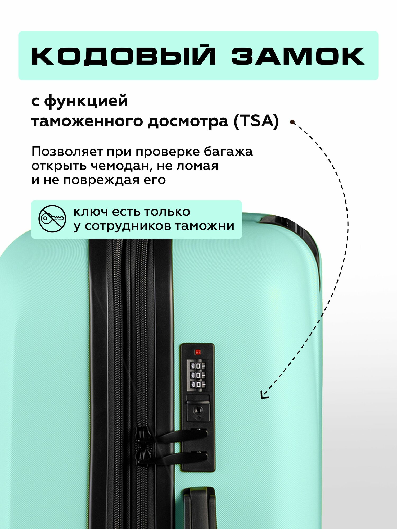 Чемодан на колесах M мятный Bonle, премиум ABS-пластик 65 см, 72 л, средний дорожный 7 665 ₽