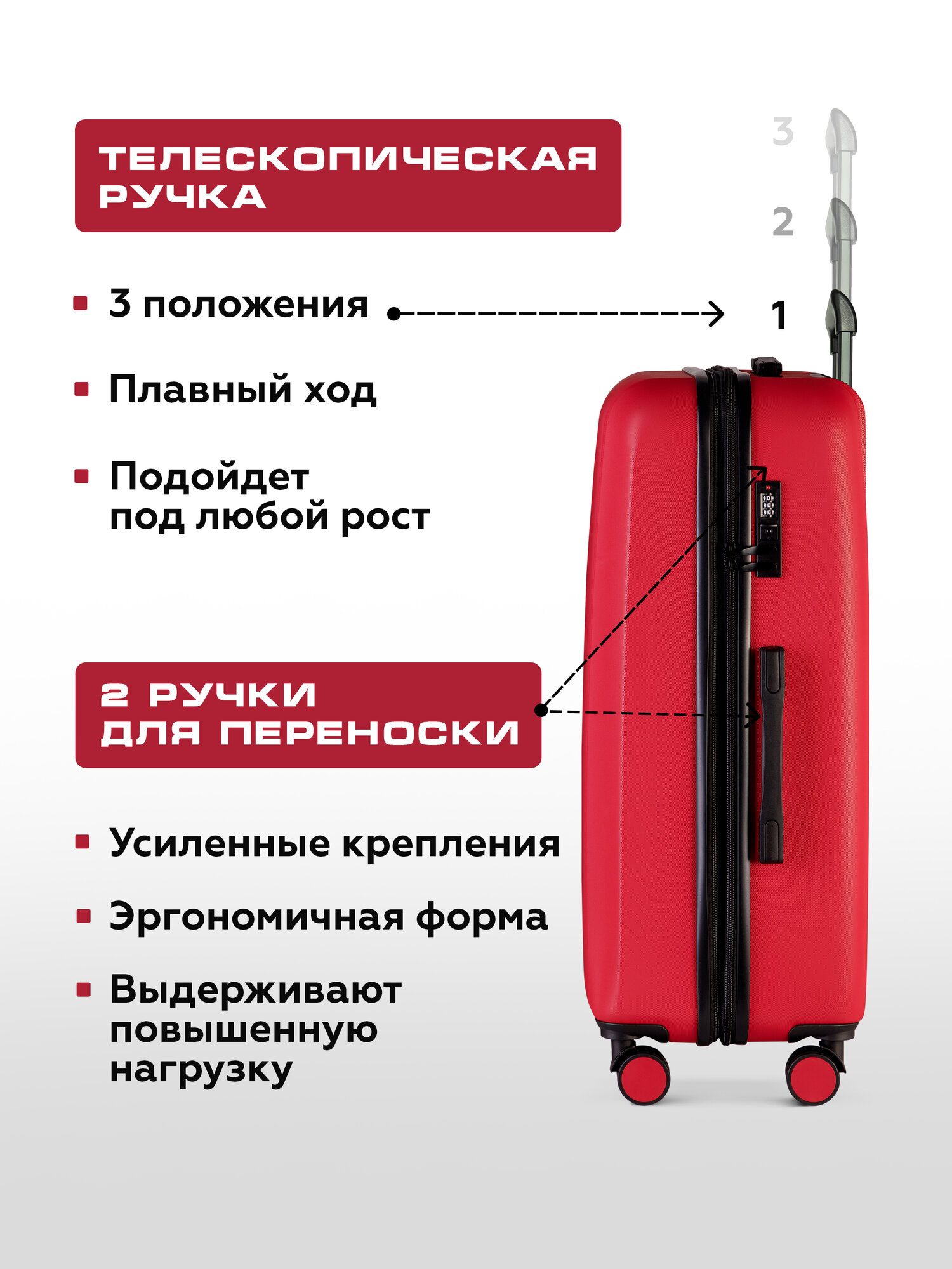 Чемодан на колесах L, с расширением, большой / 101 л, 75,5 см / Размер Л, дорожный, для путешествий красный информация: