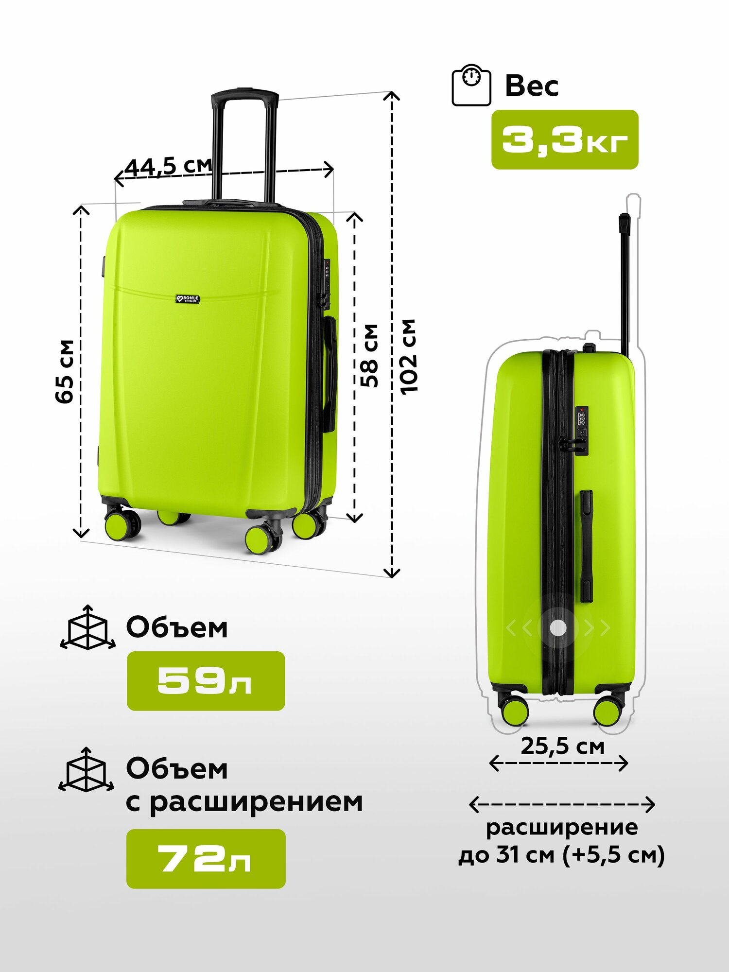 Чемодан на колесах L салатовый Bonle, премиум ABS-пластик 75,5 см, 101 л, большой дорожный 7 980 ₽