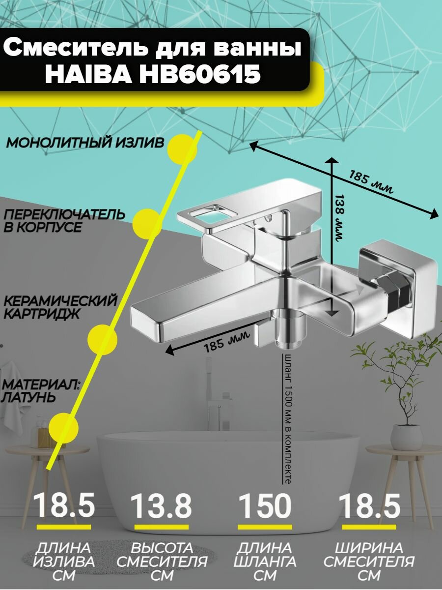 Смеситель для ванны с душем HAIBA HB60615, материал: латунь, покрытие: хром информация: