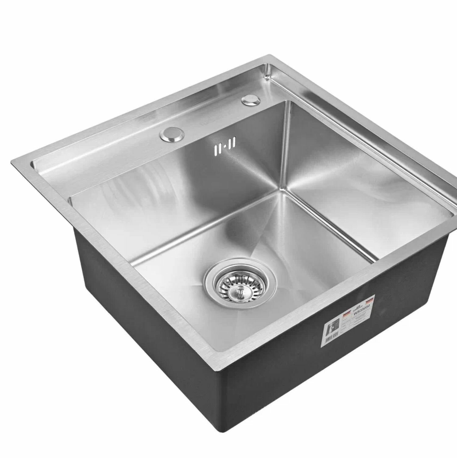 Комплект кухонная мойка из нержавеющей стали WISENT 5050 (50х50см) c раздвижным коландером и дозатором 15 015 ₽