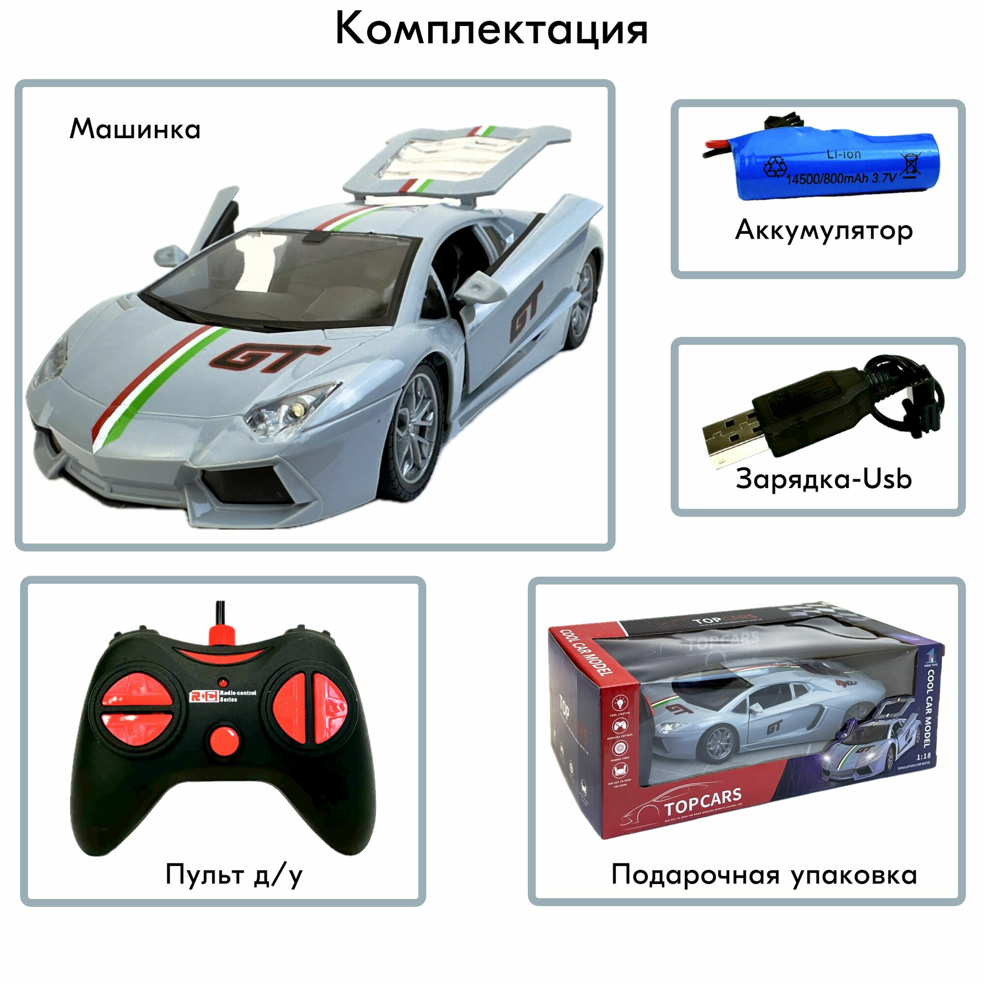 Машина на пульте управления Top Car, 1:18, светятся фары, открываются двери и багажник, гонка на радиоуправлении, аккумулятор, 22х9х5 см информация: