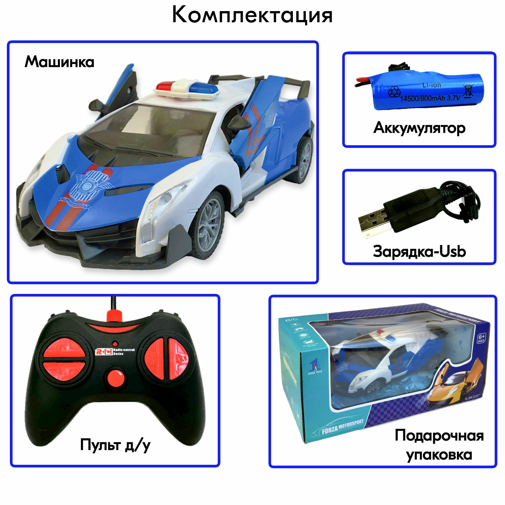 Отзывы на Полицейская машина на пульте управления Forza, 1:24, светятся фары, открываются двери, машинка на радиоуправлении, аккумулятор, 20х9х5 см
