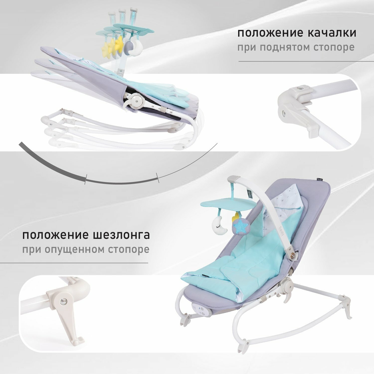 Шезлонг для новорожденных с функцией механического качения Nuovita Mellare M1 (Grigio turchese stella/Серо-бирюзовая звезда) информация: