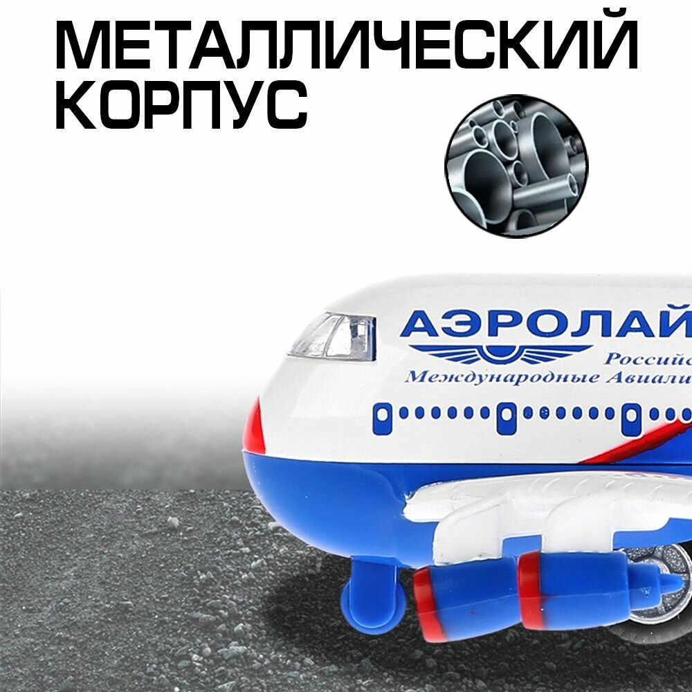 Самолет игрушка Аэролайн 10 см, Технопарк, синий с белый, металлический корпус, звук