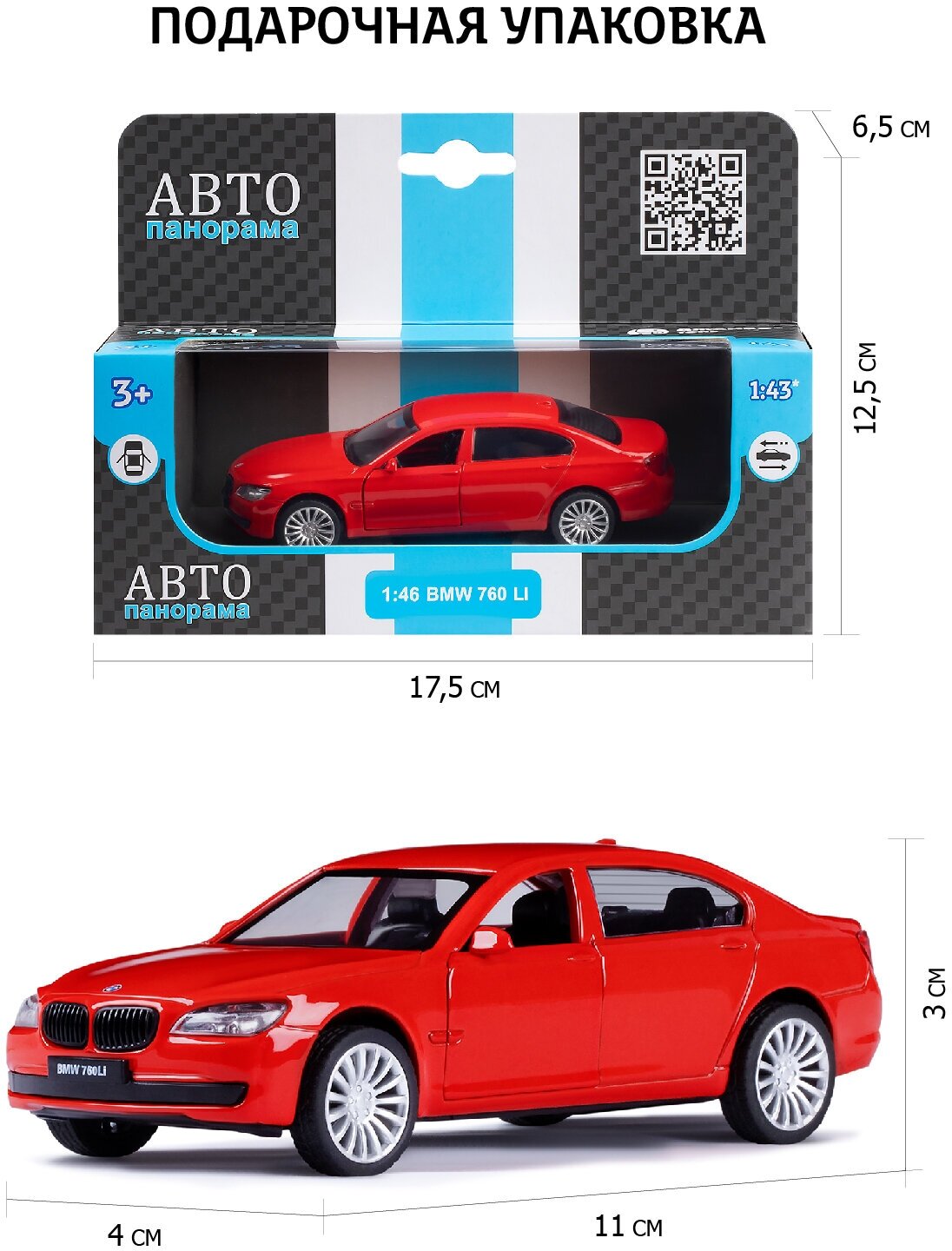 Машинка металлическая ТМ "Автопанорама" 1:46 BMW 760 LI, красный, инерция, открывающиеся двери