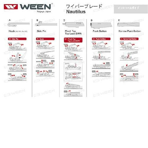 WEEN 1007014 Щетка стеклоочистителя бескаркасная Универсальная, адаптер-трансформер (hook,side pin,push button, n