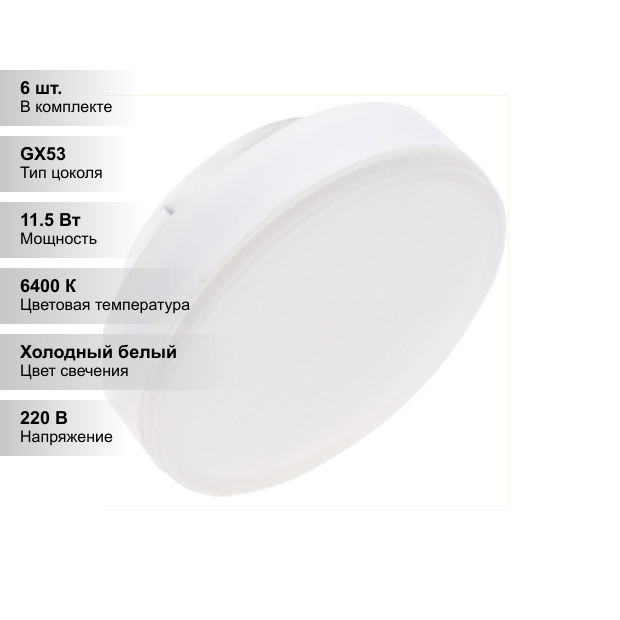 (6 шт.) Светодиодная лампочка Ecola 11,5Вт 220В 6400K GX53 информация: