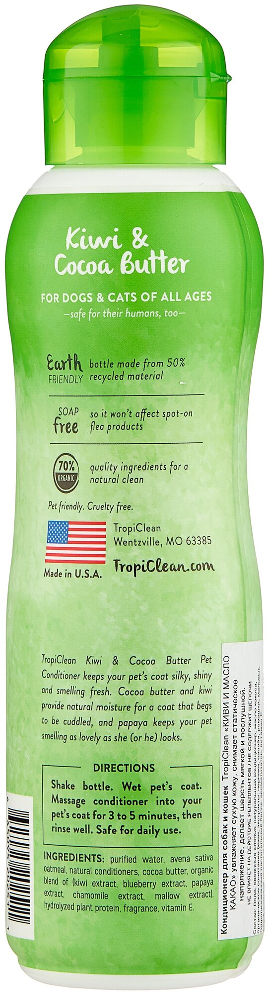 Кондиционер TROPICLEAN Киви и масло какао увлажняющий 355мл информация: