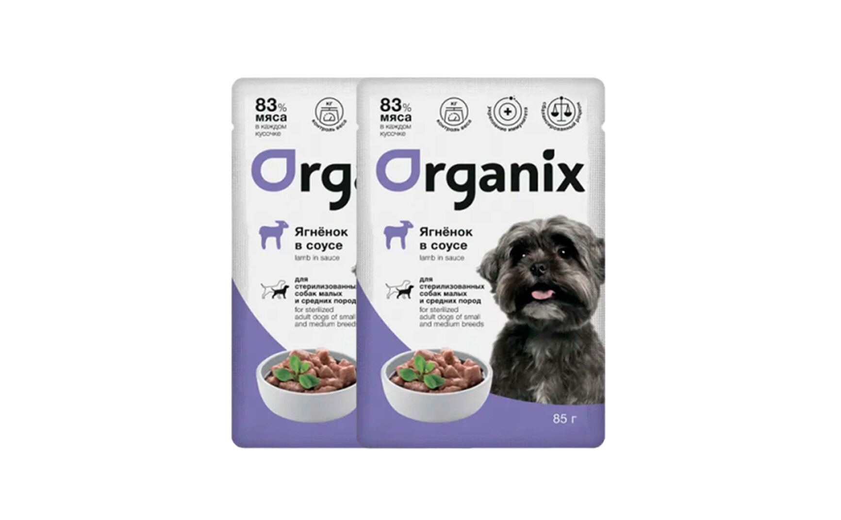 Корм влажный Organix для стерилизованных собак мелких и средних пород, ягненок в соусе, 85 г