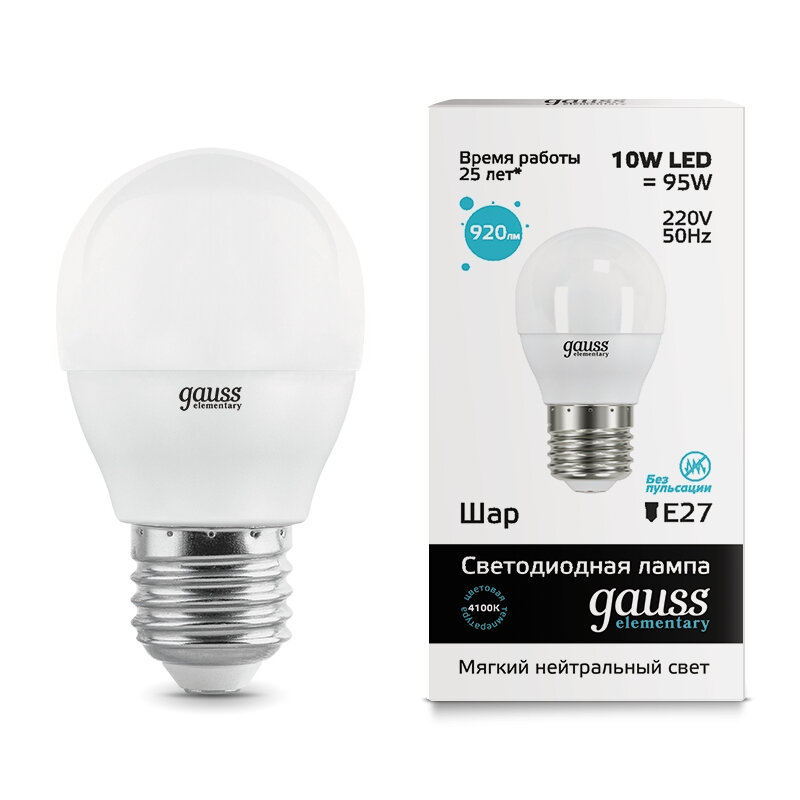 10 цен на Лампа LED GAUSS E27, шар, 10Вт, одна шт. [53220]