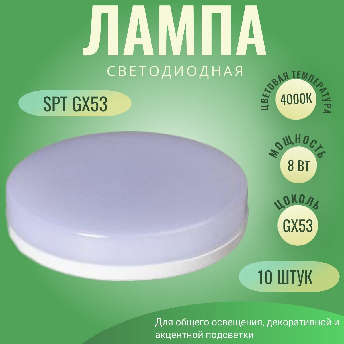 Лампа светодиодная 10шт SPT 8W 4К(нейтральный белый) GX53 для встраиваемых светильников, потолочная