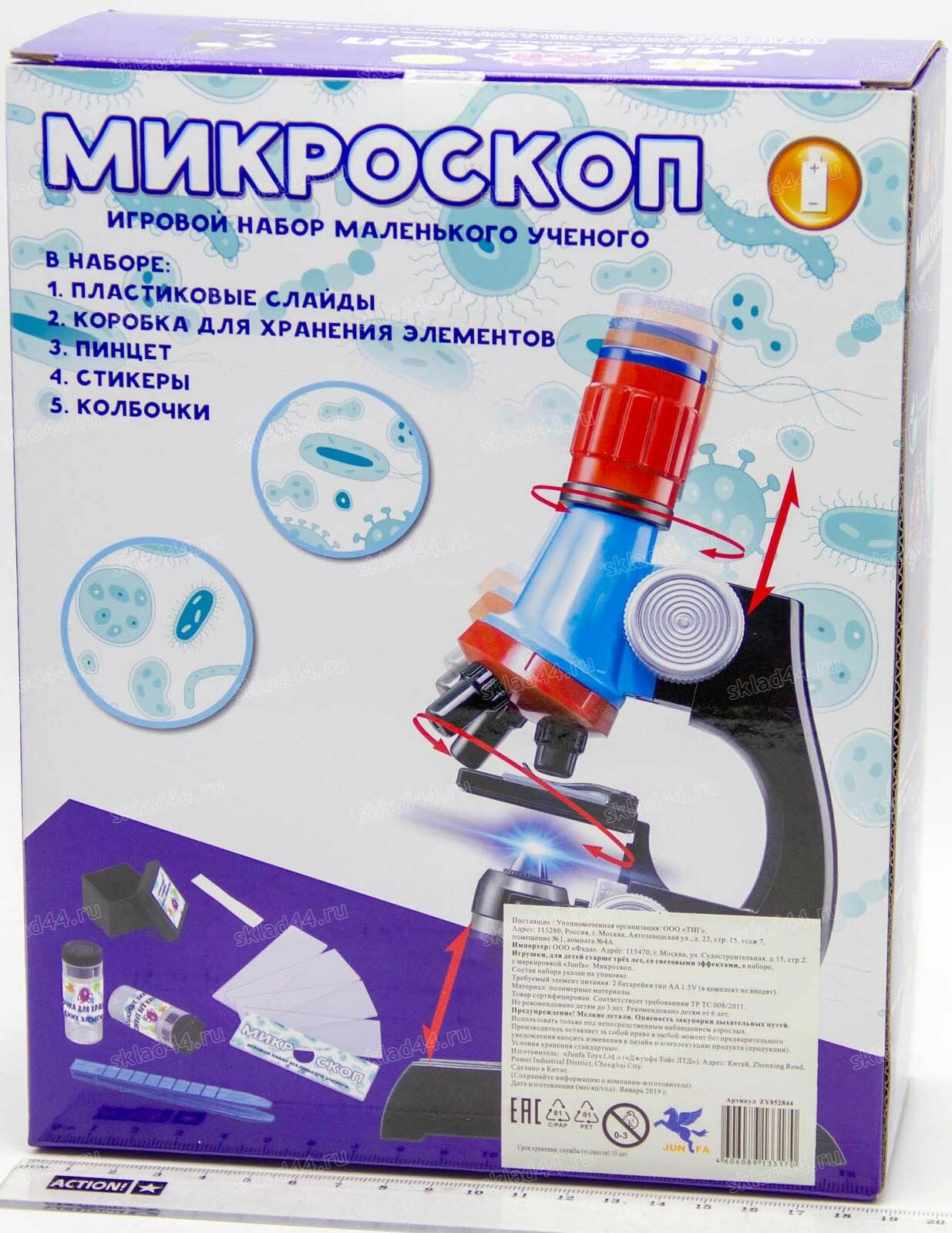 10 цен на Микроскоп ZYB-B2934-2 с подсветкой и аксесс. , в коробке