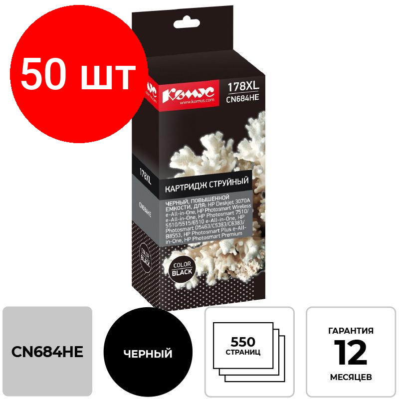 Отзывы на Комплект 50 штук, Картридж струйный Комус 178XL CN684HE чер. пов.емк. для HP D5463