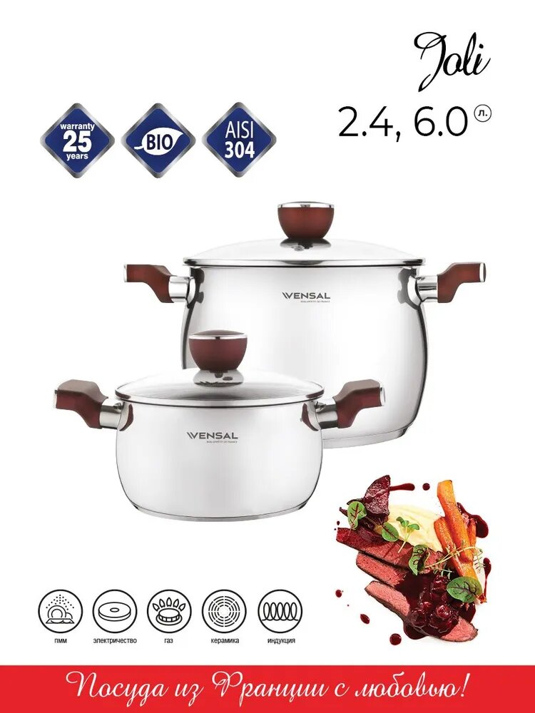 VENSAL Набор 4 предмета, кастрюля 2,4 л, кастрюля 6 л, две крышки Joli VS1549