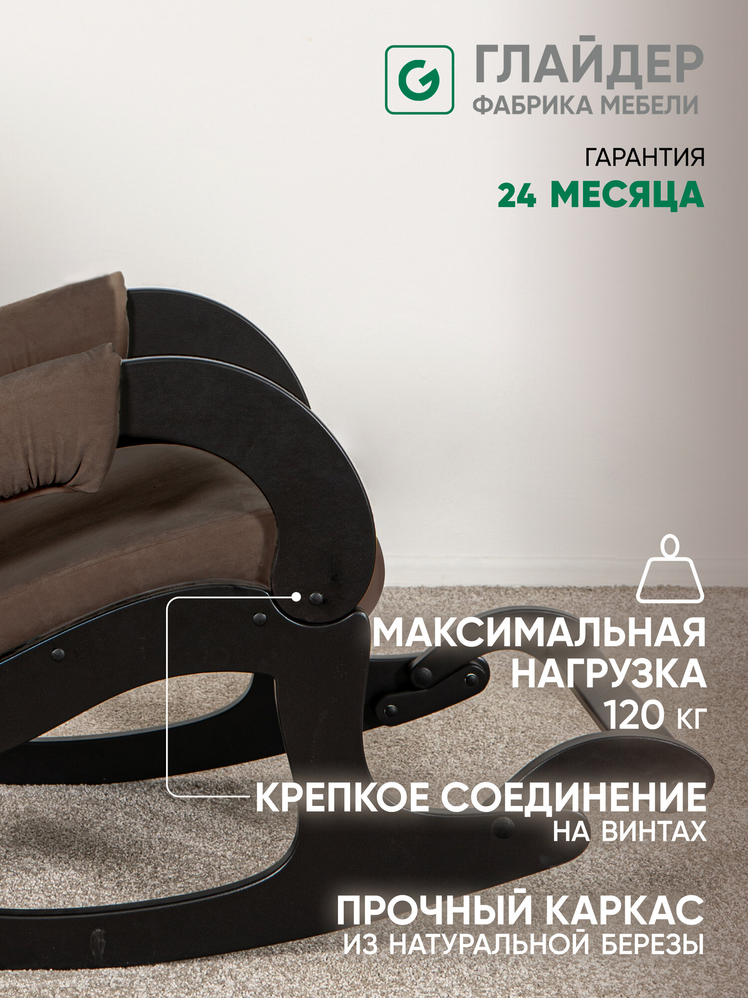 Кресло-качалка с подножкой для дома и дачи Glider Аоста М в ткани Микровелюр, цвет коричневый / боковины венге информация:
