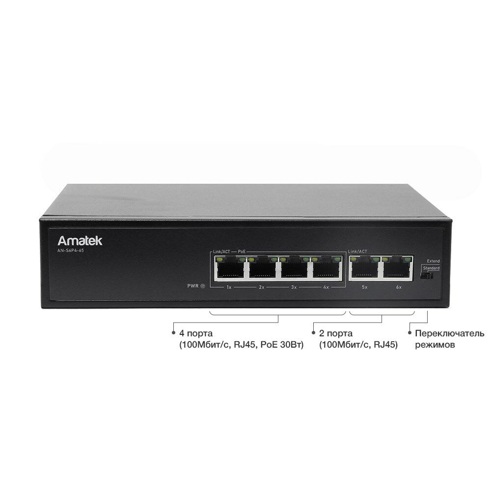 AN-S6P4-65 Amatek Сетевой коммутатор 6-портовый 100 Мбит/с коммутатор с PoE+ до 65Вт