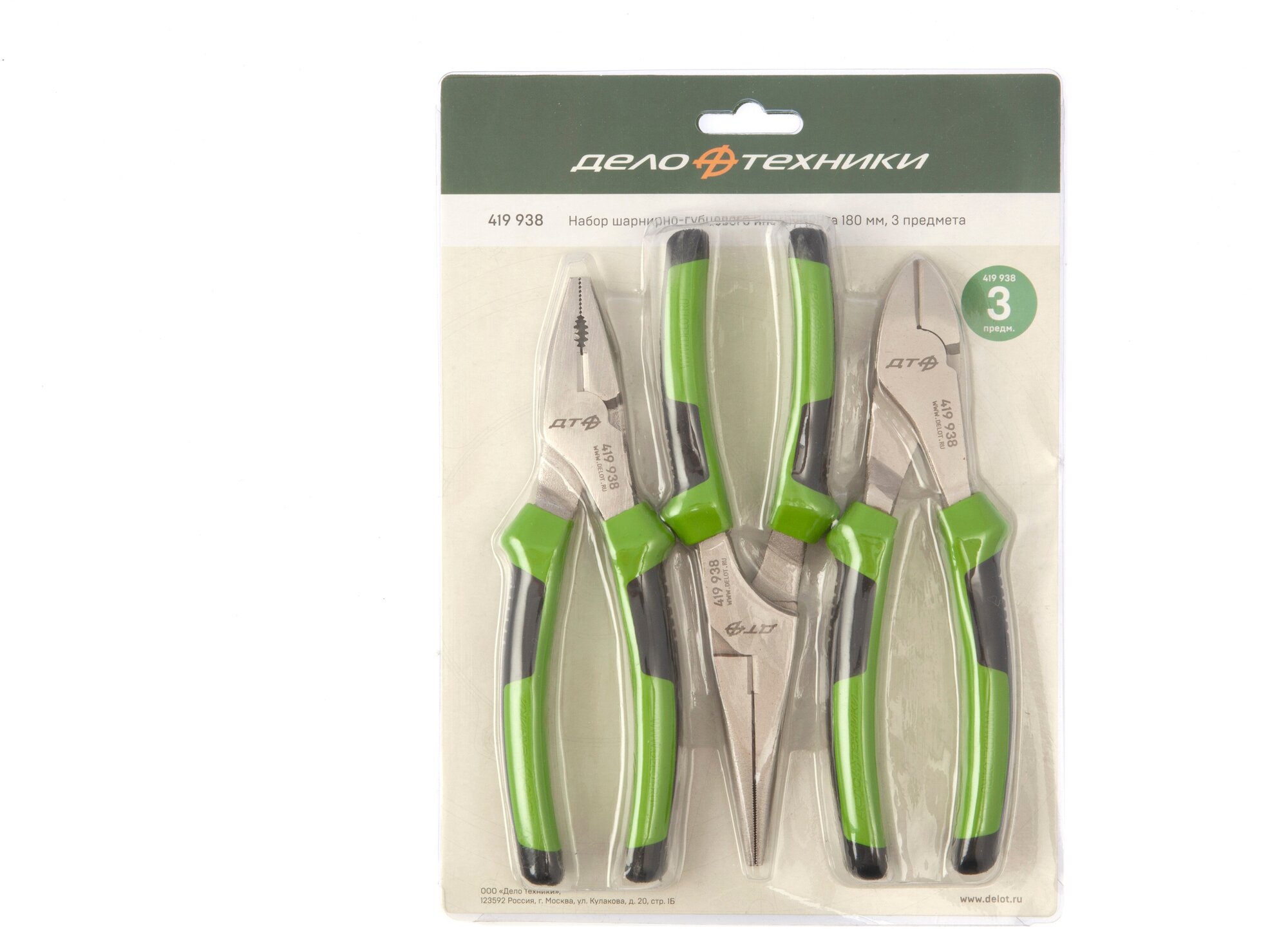 Набор шарнирно-губцевого инструмента Дело Техники 419933, 3 предм., черный/зеленый