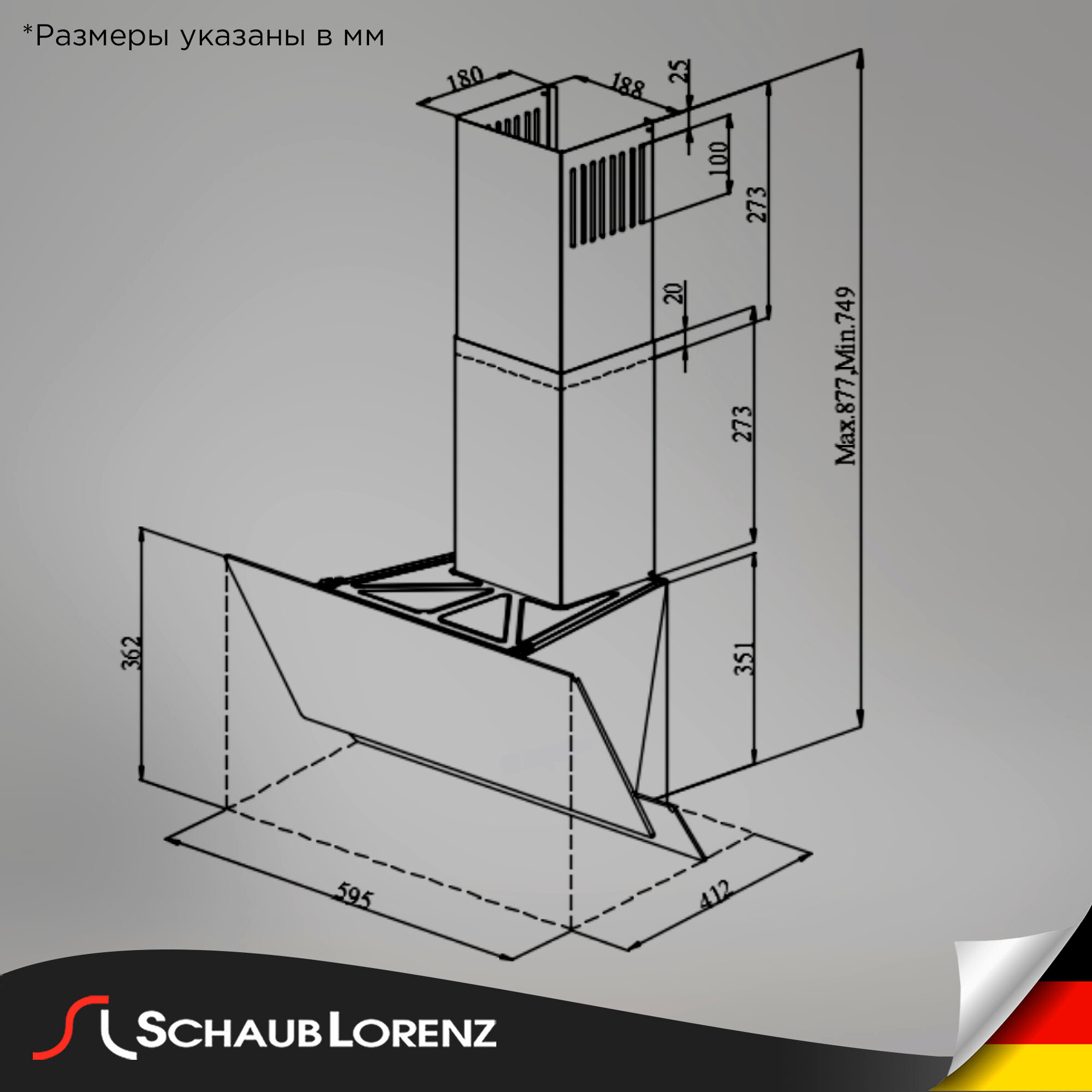 Вытяжка кухонная наклонная Schaub Lorenz SLD DY6430, 60 см, 3 скорости, черное стекло информация: