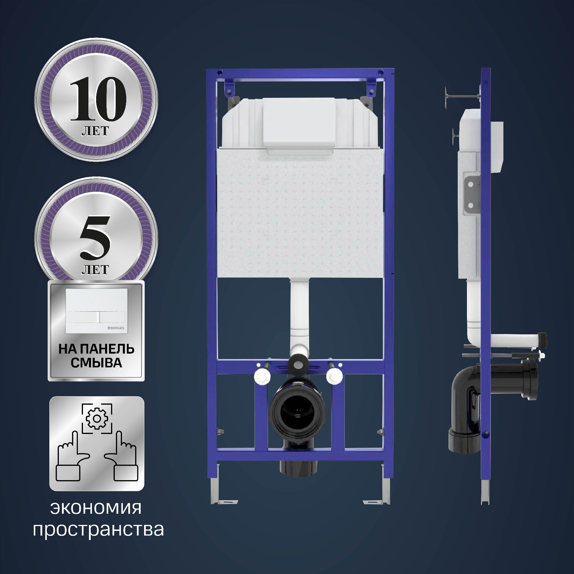 Berges Wasserhaus Инсталляция NOVUM L1 040211 для подвесного унитаза в комплекте с белой кнопкой_NEW 11 800 ₽