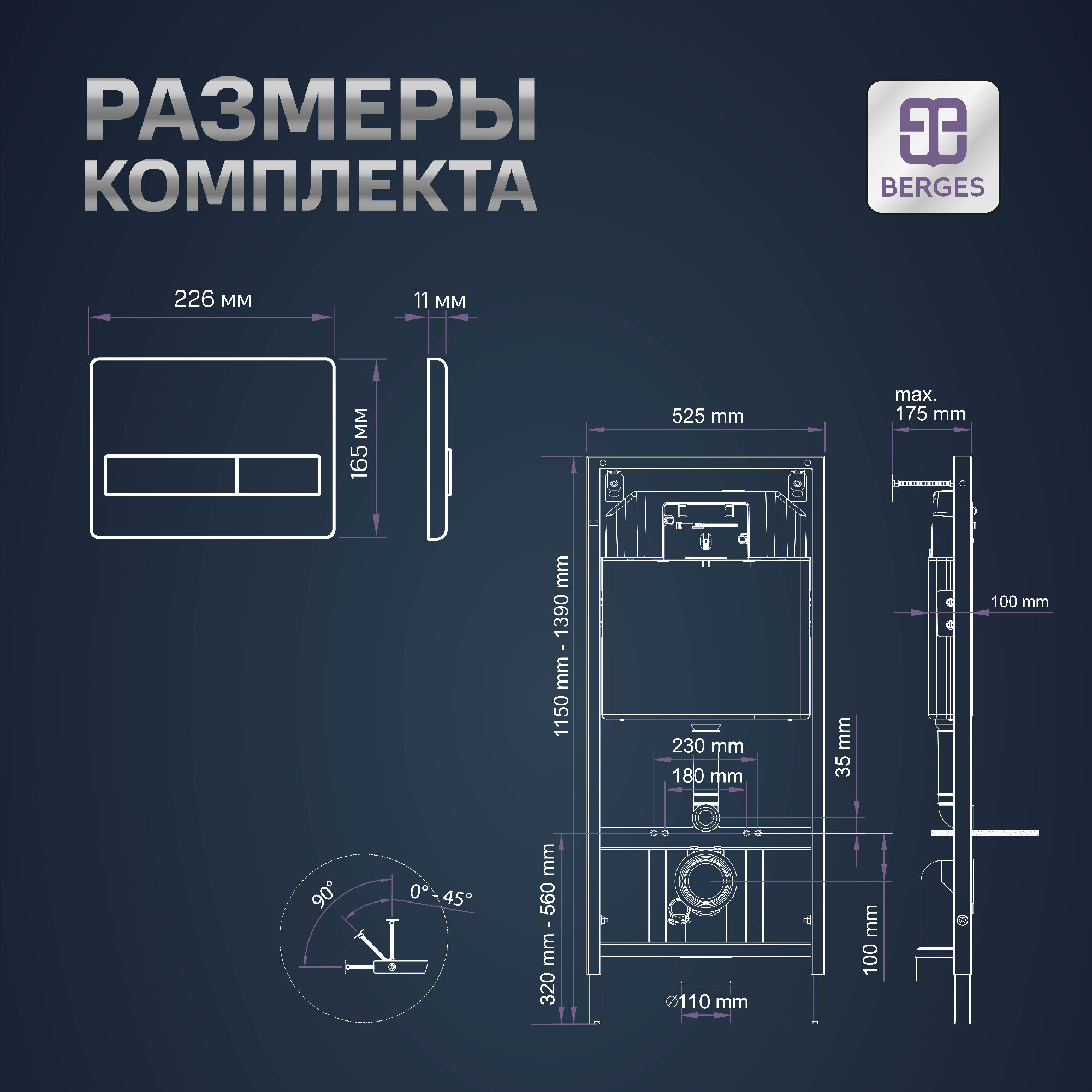 Инсталляция BERGES для скрытого монтажа унитаза NOVUM кнопка F2 матовый хром