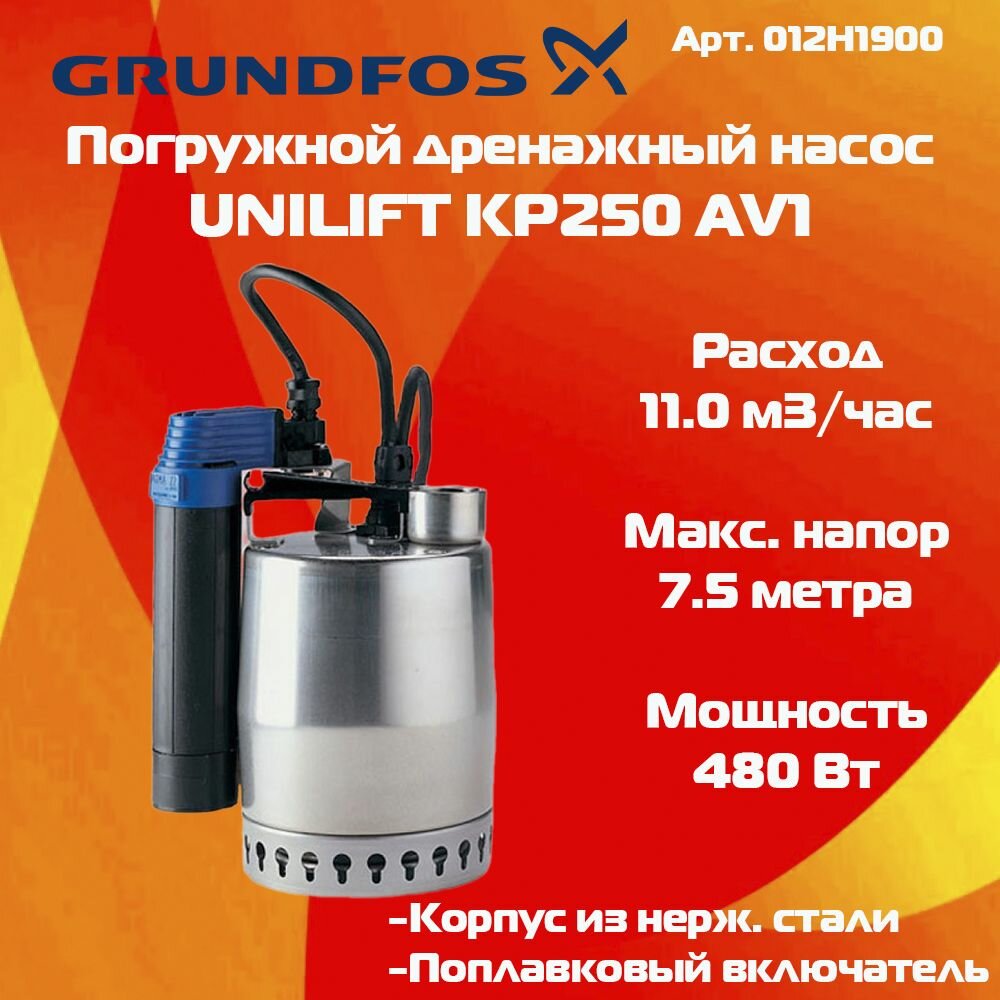 012H1900 Насос дренажный Grundfos Unilift KP 250-AV1 с вертикальным поплавком (012H1400) информация: