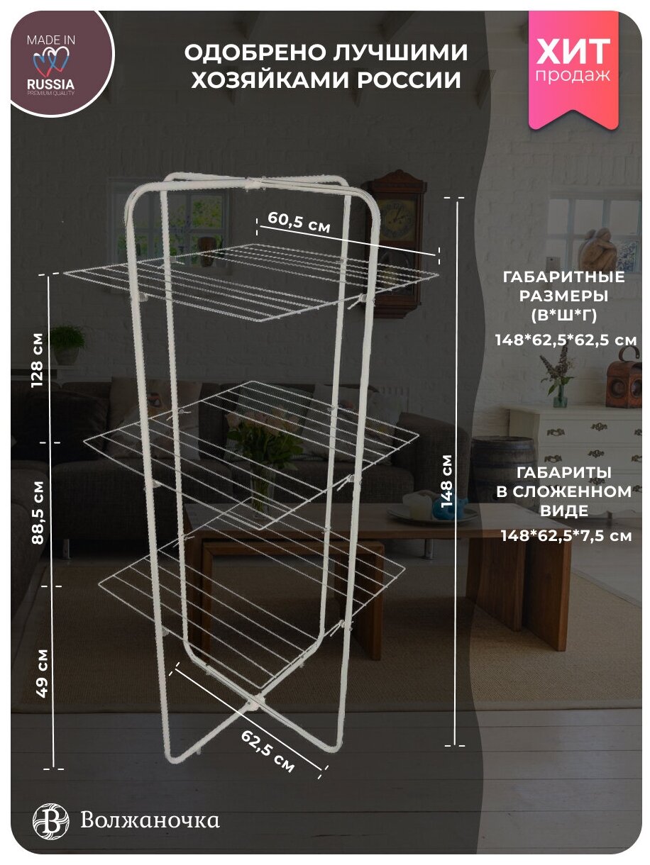 10 цен на Сушилка для белья "Березка" 3-х ярусная напольная, серебристый, 148,5х62,5 см