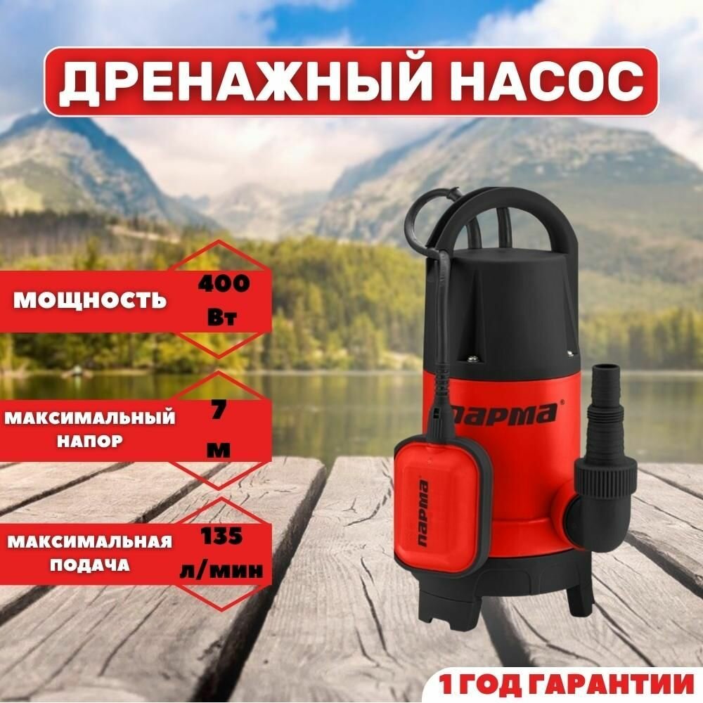 Насос садовый дренажный Парма НД- 400/5-35П 400Вт 8100л/час .