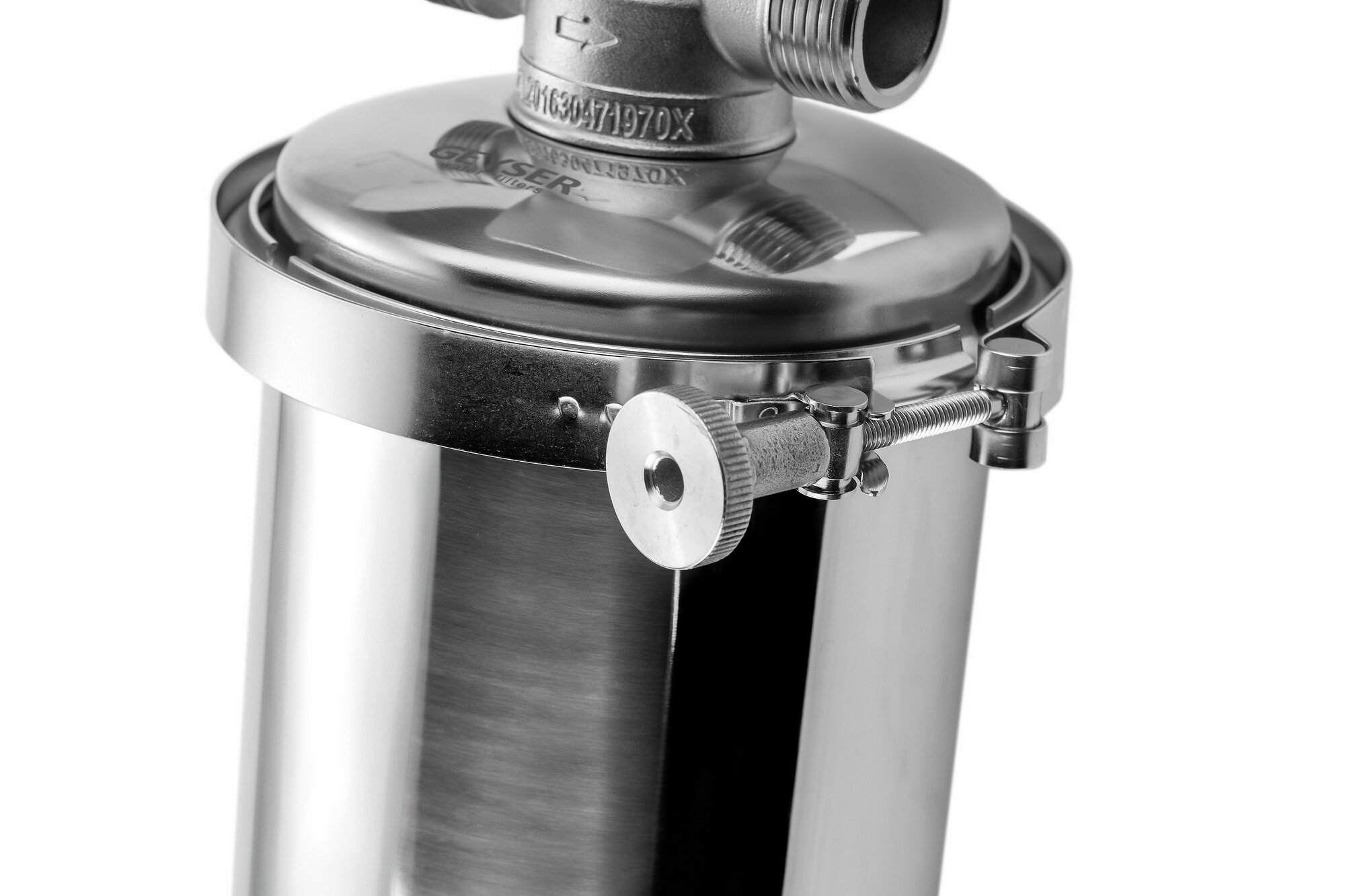 Корпус Гейзер Премьер 10BB 1" нерж. сталь, для хол. и горячей воды, со сливом