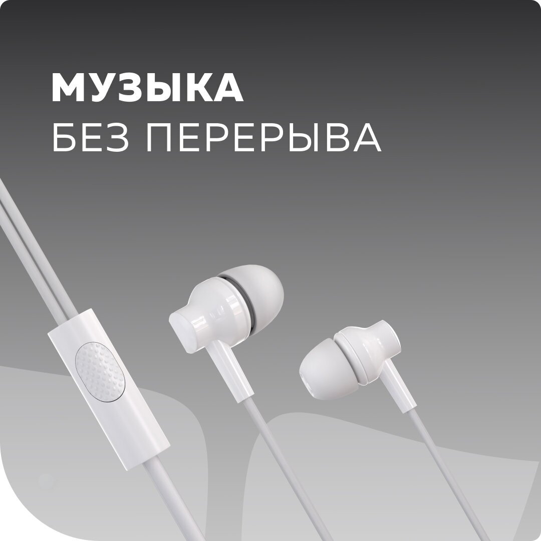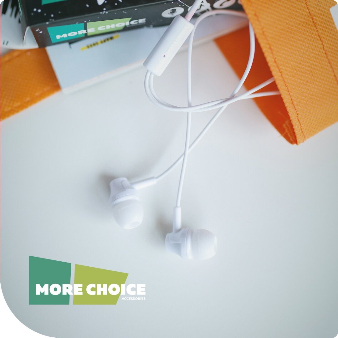Наушники проводные вакуумные AUX разъём с микрофоном без регулятора громкости длина 1.1м More Choice G38 белые